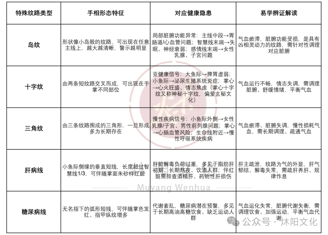 二、特殊纹路手相解析表(健康预警灯)