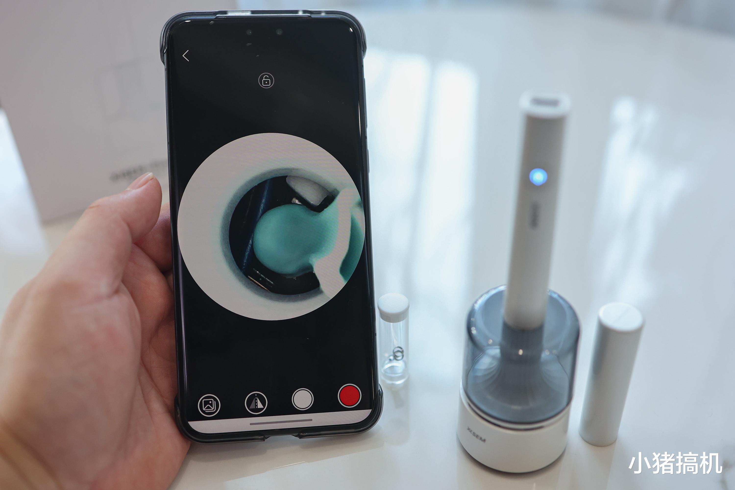 它自研的 A-Zoom 2.0 动态调焦系统也很赞,解决了传统可视工具一动,画面就模糊的问题,每秒 100 次实时调焦,我们无论是推进,还是转动耳勺,画面始终清清爽爽,整个掏耳朵的过程又快又安全。