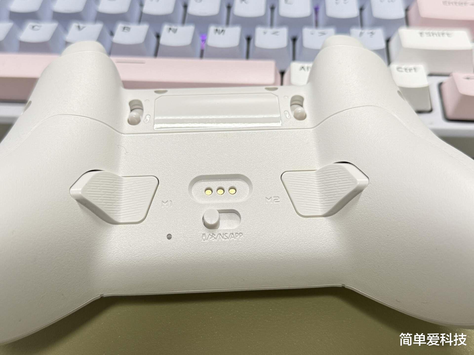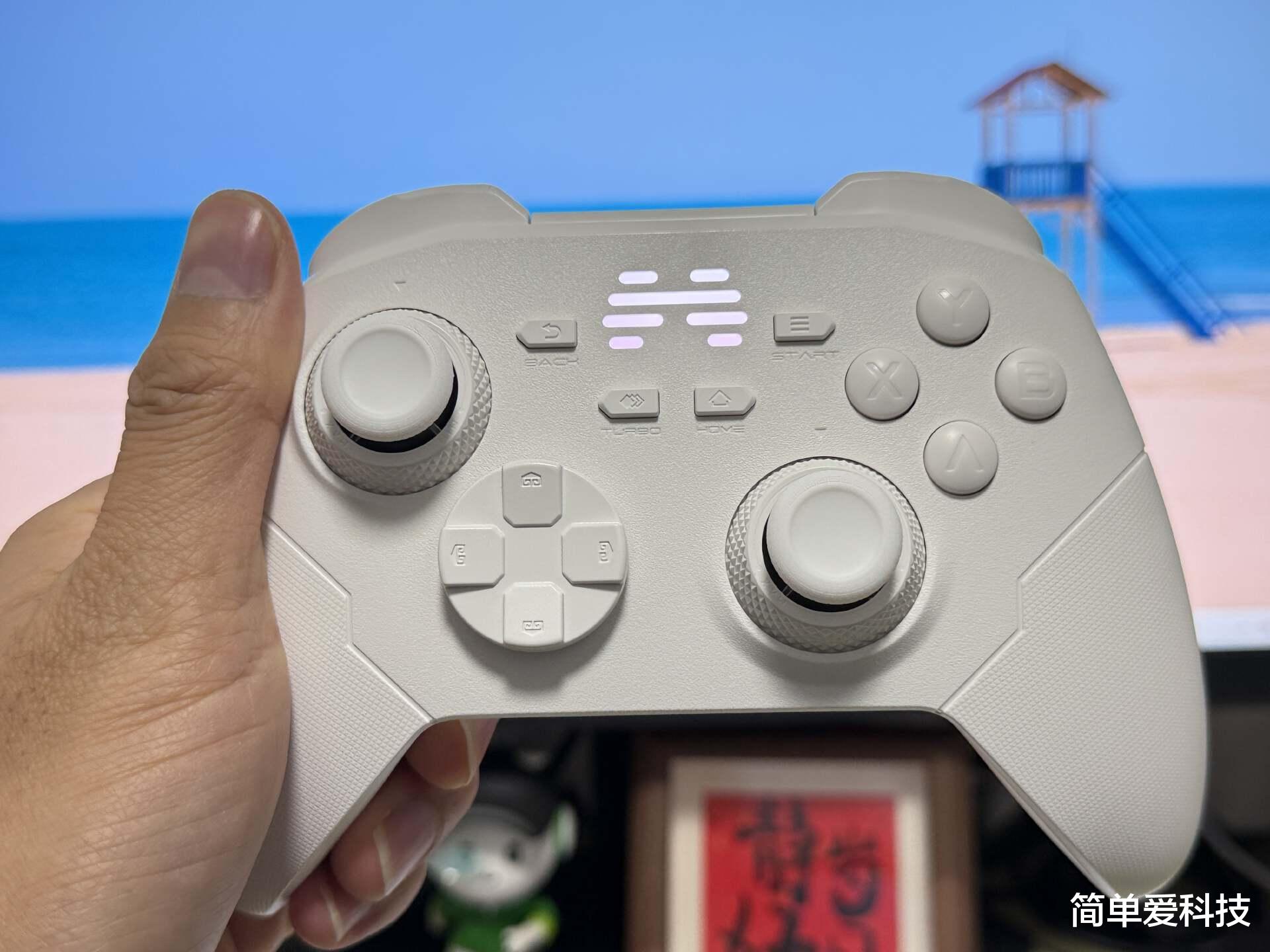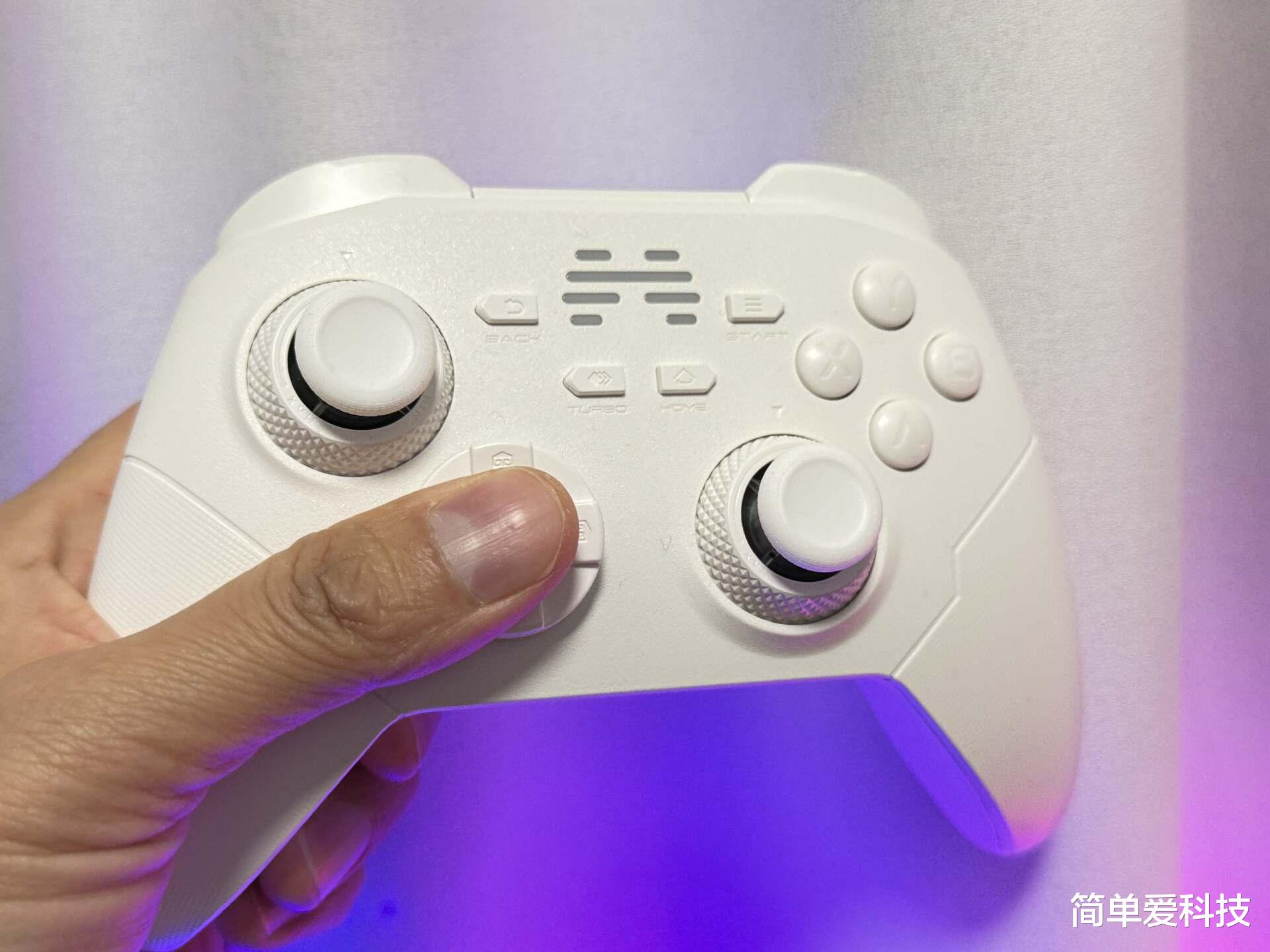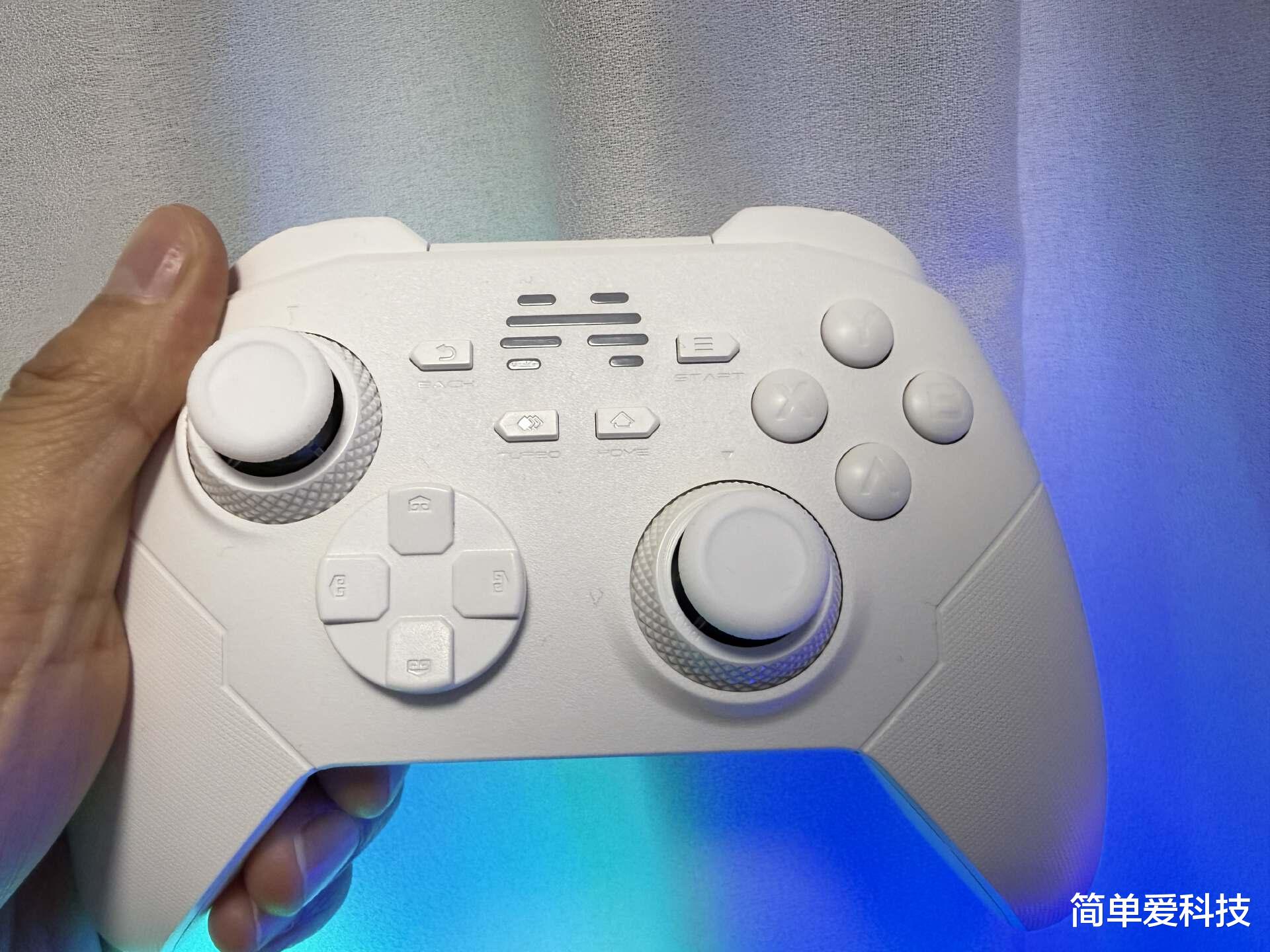 中心区域的按键设计:ABXY用了黄金机械微动按键,按下去有清脆的反馈声,力度刚好,不会像有些手柄那样软塌塌的没手感,也不会硬到按久了手指疼,十字键也是类似的微动手感。