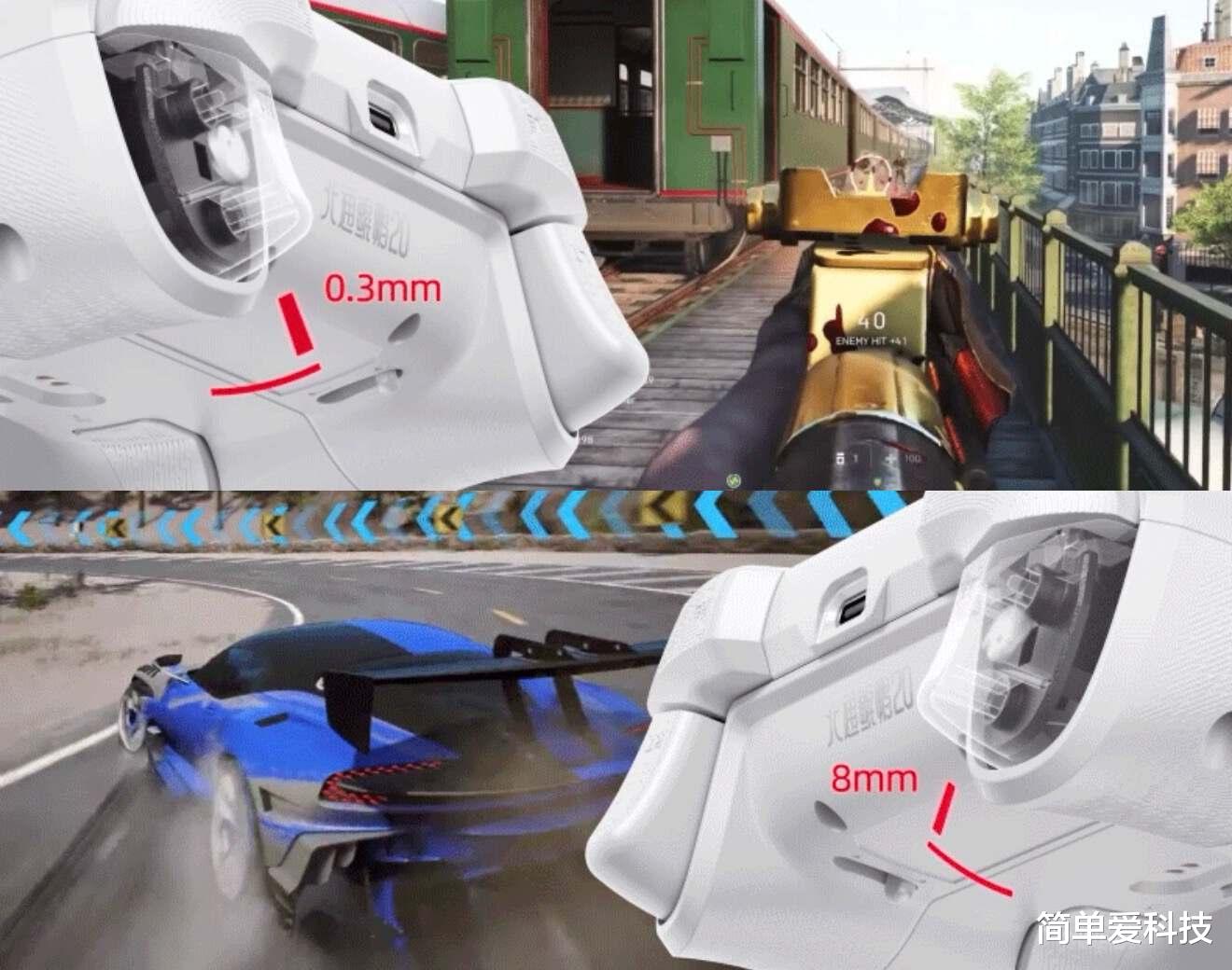 《地平线5》里的连续弯道最考验手柄——油门给大了会冲出去,给小了会被后车超。鲲鹏20的双切震动扳机在这儿派上了大用场:长行程模式下,扳机键的反馈特别线性,轻按是缓行,重压到底就是全力加速,过弯时稍微收一点力度,车身就能稳稳过弯,这种细腻的控制感,使得游戏体验非常给力。