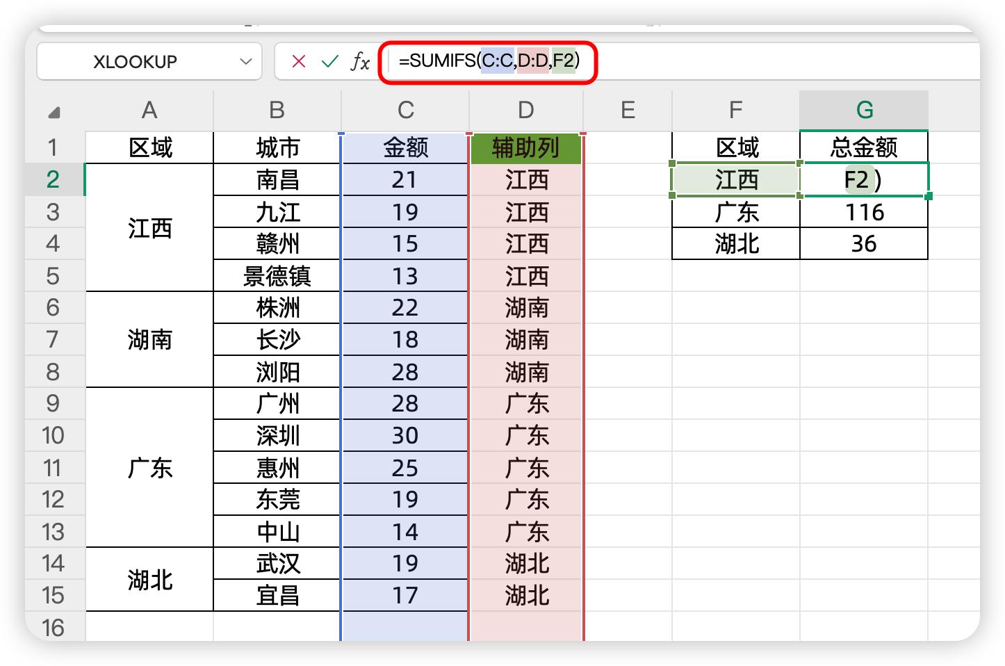 现在我们需要汇总各大区的总金额。