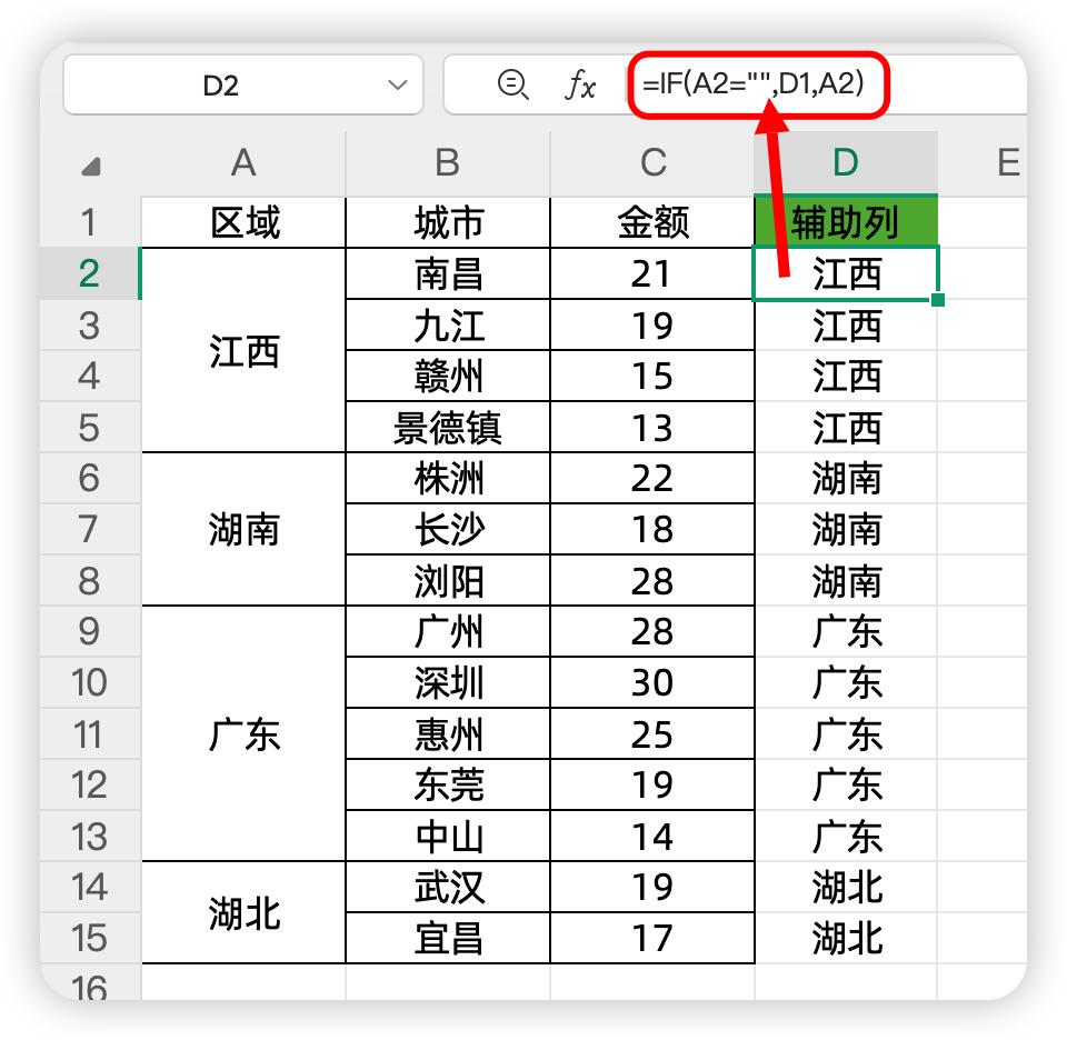 方法三:使用公式法拆分我们建立一个辅助列D列,在D2单元格中输入的公式是:
