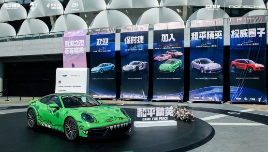 保时捷与《和平精英》的合作突破“皮肤贴标”的浅层模式,游戏内载具不仅还原了保时捷911的车身线条、轮毂细节与引擎声浪,还推出了粉猪、绿恐龙、粉恐龙正版涂装,上线首周即成为玩家使用率最高的载具皮肤。
