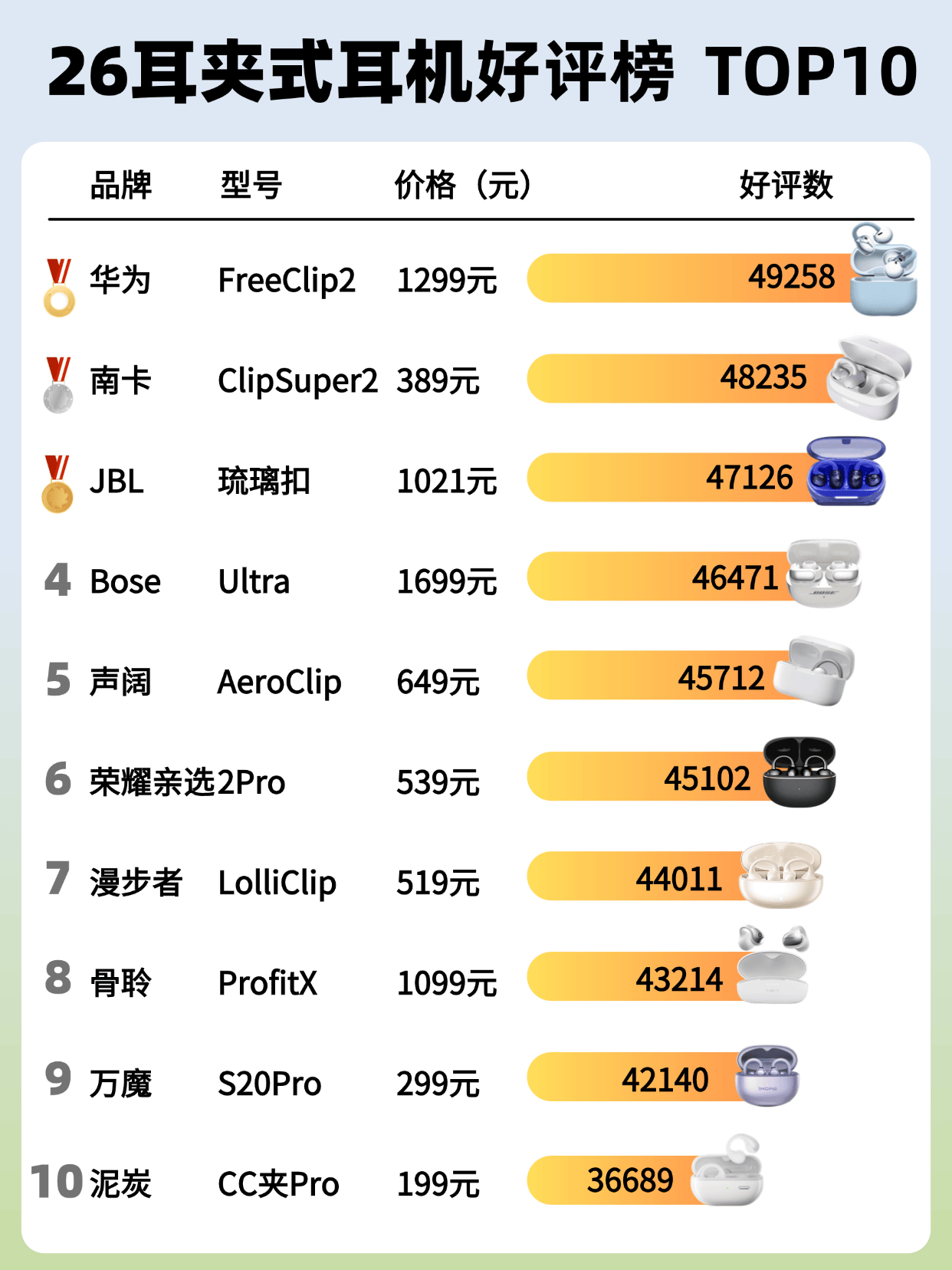 很多人想入手耳夹式耳机,都会问:耳夹式耳机最建议买哪个?现在市面上款式多、价格不一,只看宣传很难分清好坏,选到戴着舒服、用着稳定的款式并不容易。为了帮大家少走弯路、选得更放心,我结合真实用户口碑和日常使用体验,整理出十大公认最好的夹耳式耳机排名。内容简单易懂,不夸大、不讲复杂参数,只说佩戴、音质、续航这些实际感受,方便你快速找到适合自己的那一款。