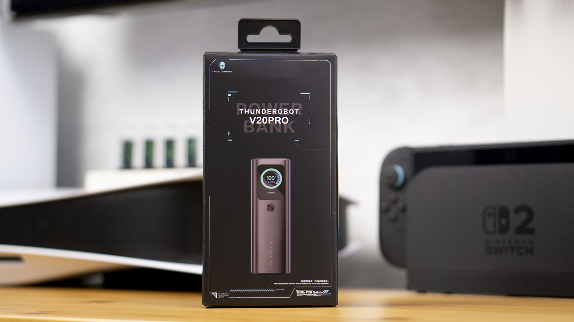 这是雷神V20PRO的外箱,还是其充电宝的家族风格设计。中间是产品图,同样是有着彩色屏幕的它,但是个头显然比V10高了不少。