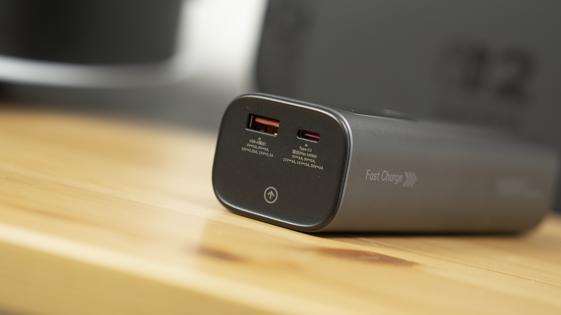 它的顶部有一个USB-A(这点必须好评一下,毕竟不是所有的设备都进化到了Type-C)支持5V 3A、9V 3A、10V 2.25A和12V 2.5A。还有一个Type-C,支持5V 3A、9V 3A、12V 3A、15V 3A和20V 5A,其最高输出功率能够达到100W。