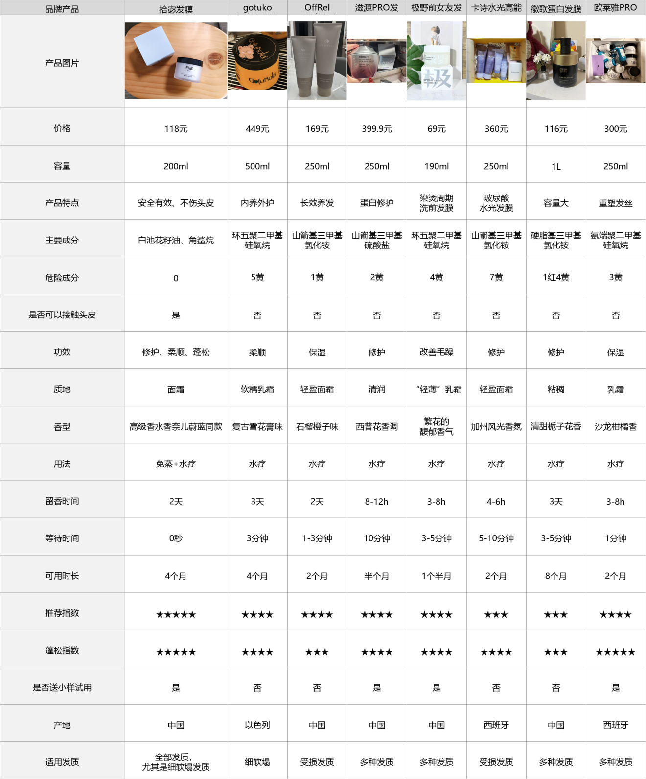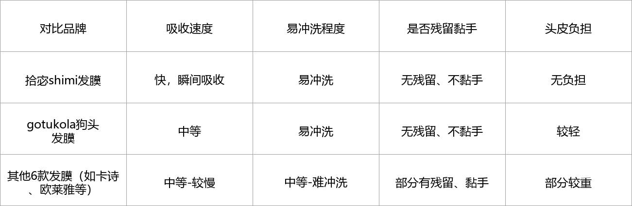 表现优秀:拾宓shimi发膜、gotukola狗头发膜