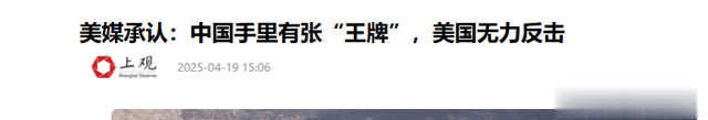 ( 信息来源:上观新闻 2025年04月19日 —— 美媒承认:中国手里有张“王牌”,美国无力反击 )