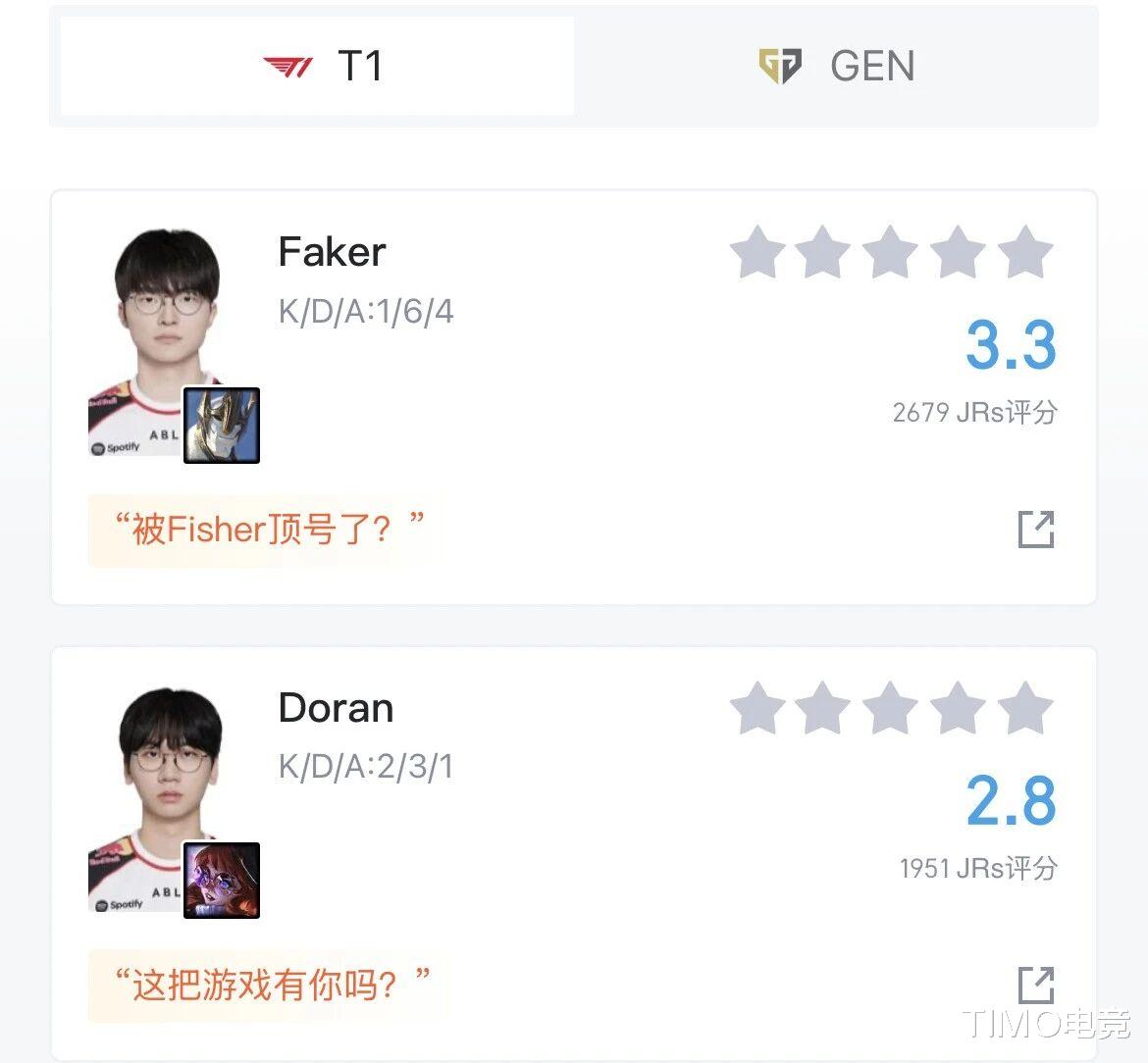 Faker加里奥1-6,被fisher顶号了,T1全场毫无还手之力。