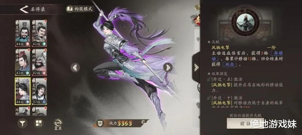玩家体验后称:不愧为吕布之女,她在极端条件下配合甘梅开局满怒气在动战法能够移动到15格开外,与骑兵搭配有奇效,在逃脱类型的关卡能把作用发挥到极致。