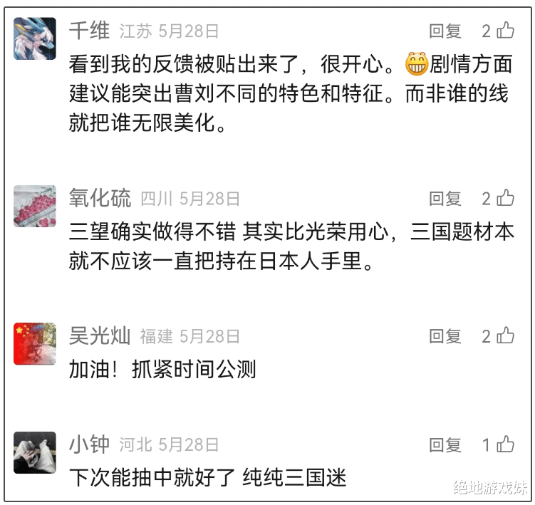 看到自己的意见被采纳,更多玩家的积极性也被调动起来,他们对游戏提出了真诚的修改意见,希望策划采纳之后,在公测版本中能够给与更好的改进。