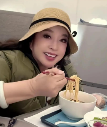 照片里的场景并不华丽,甚至带着几分朴素的烟火气——年逾七旬的刘晓庆,独自一人坐在车内,面前摆着一碗热气腾腾的面条。车厢里没有旁人的陪伴,没有精致的年夜饭,只有空调出风口微微送着风,衬得这份独处格外安静。她低着头,专注地吃着碗里的面,神情淡然,看不出太多情绪,却在跨年夜的喧嚣背景下,勾勒出一幅与周遭格格不入的画面。