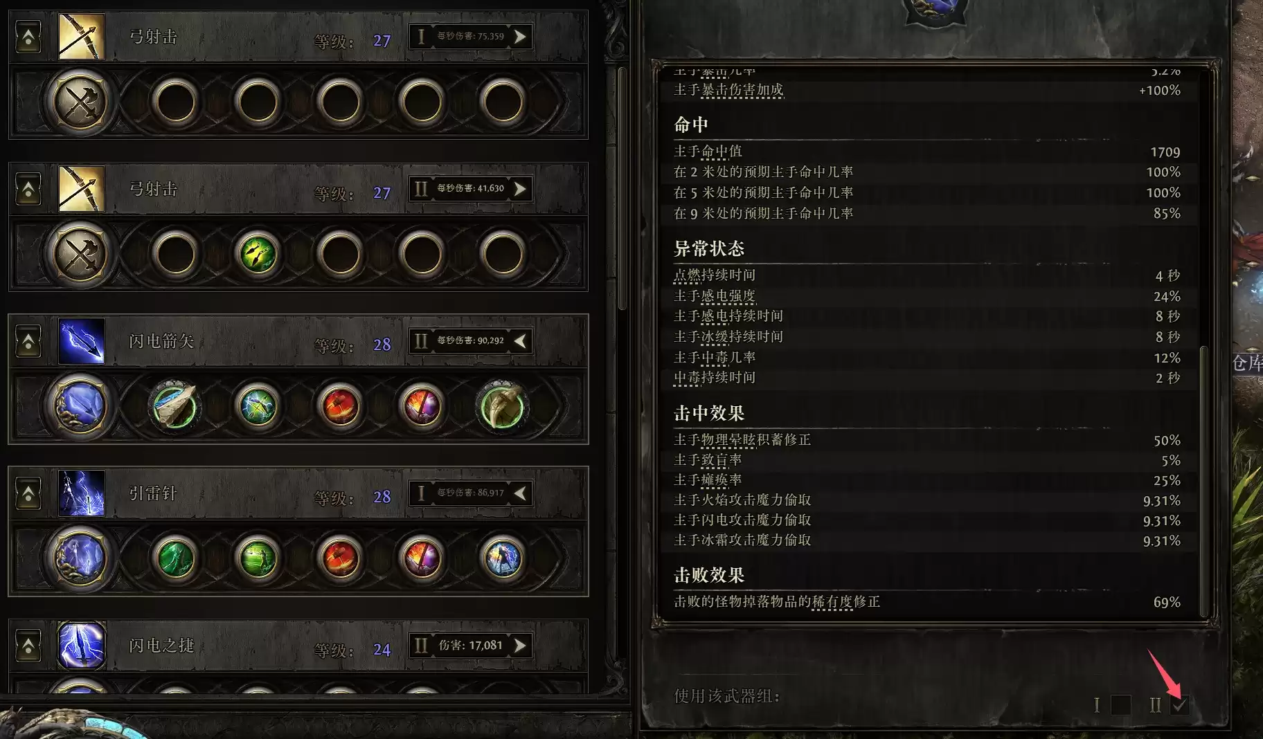 先点完主干天赋,之后红色为武器组I-即雷霆之仗,绿色为武器组II-即闪电箭矢。