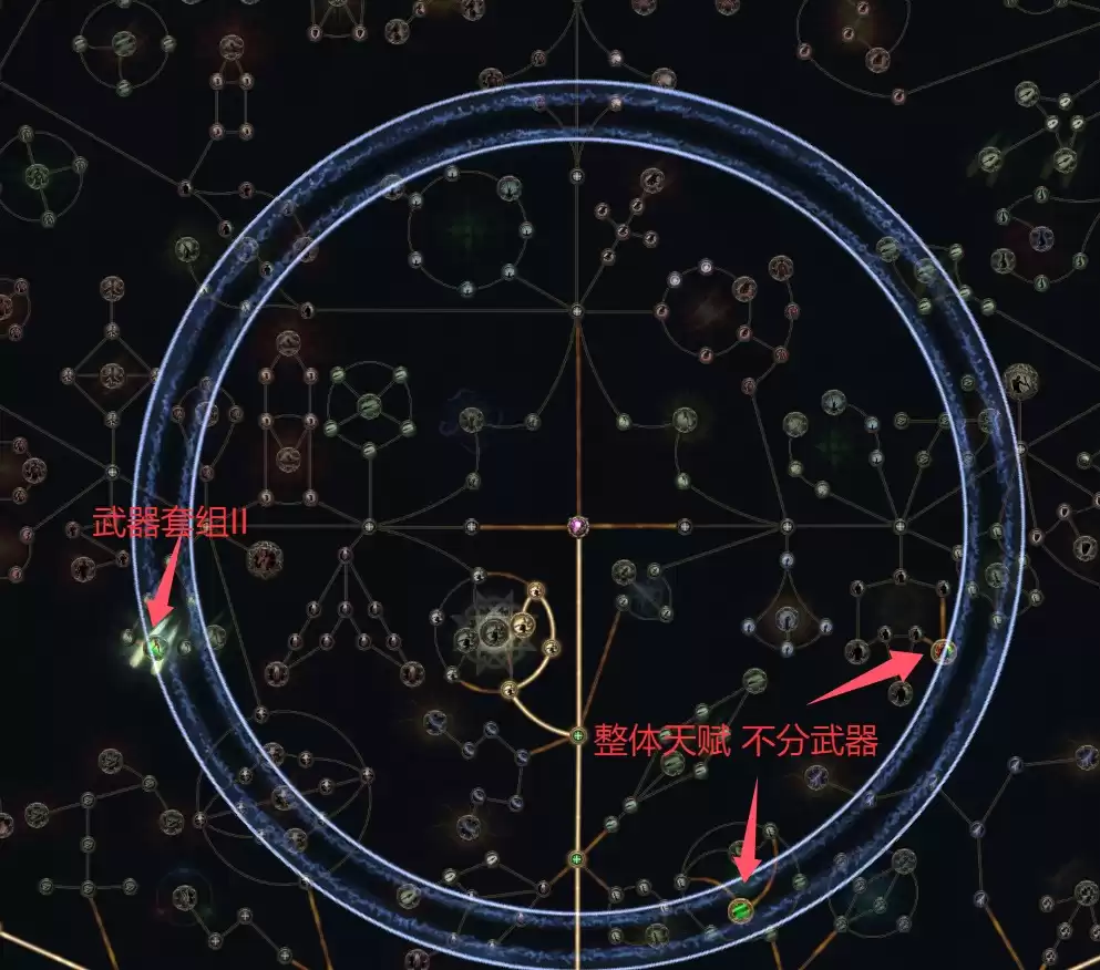 双天赋介绍:首先介绍一下本赛季POE2新增的一个功能,即同一把武器可以绑定两套天赋,这个新功能是这套BD配置的核心思路。