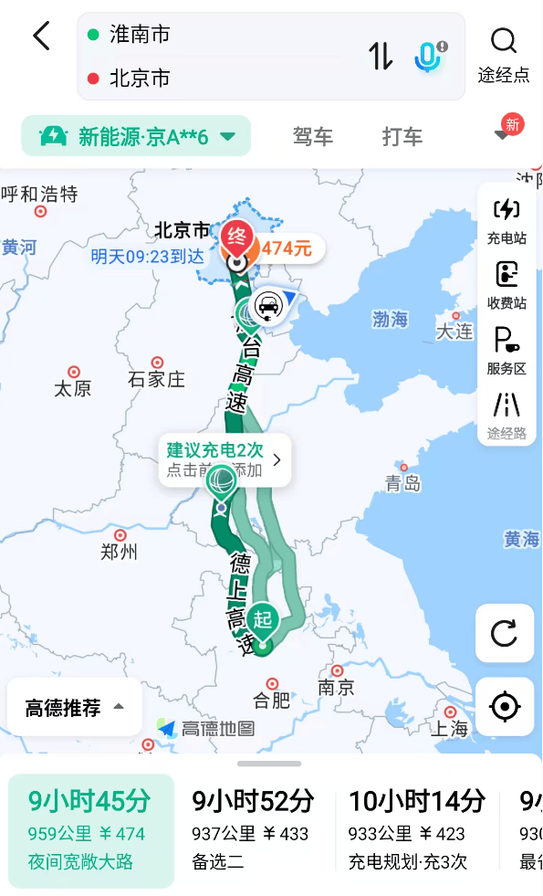 最后算下来,虽然有绕路,但整体用时可能差不多、或者还能缩短一点。中途休息、充电的时间会比较充裕,分段驾驶也更容易跑完这场“自驾马拉松”。