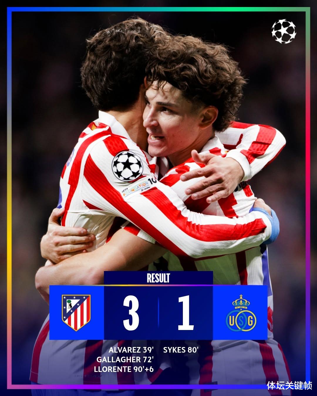 客队在上半场采取主动,但朱利安·阿尔瓦雷斯巧妙的射门帮助主队半场领先。迭戈·西蒙尼的球队最终由康纳·加拉格尔以一记精彩的弧线球破门,将比分改写为2-0。后卫罗斯·赛克斯为客队扳回一城,随后马科斯·略伦特在伤停补时阶段确保胜利。