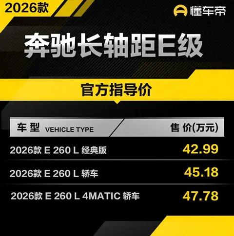 最近奔驰推出了E 260 L经典版,起价是42.99万,比去年便宜了两万多块,听起来挺划算的,不过它不是简单降价,而是减掉了一些配置,比如原装行车记录仪没有了,智能驾驶辅助功能需要另外花钱选装,连车灯和音响这类看起来有面子的部分也得自己加钱补上,这一招挺聪明,用更低价格吸引那些想买豪华车可预算不太够的人。