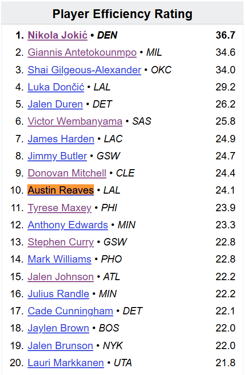话至此,不免再次惊叹下里夫斯的进步,四年前的2021年夏天,他还是一个拿着E10合同的落选秀,然后从双向合同、替补一步步打到首发、主力轮换,再到上赛季的湖人三当家、本赛季的全明星+最佳阵容水平,一年一个脚印,希望里夫斯能保持下去,未来带来更多惊喜吧。