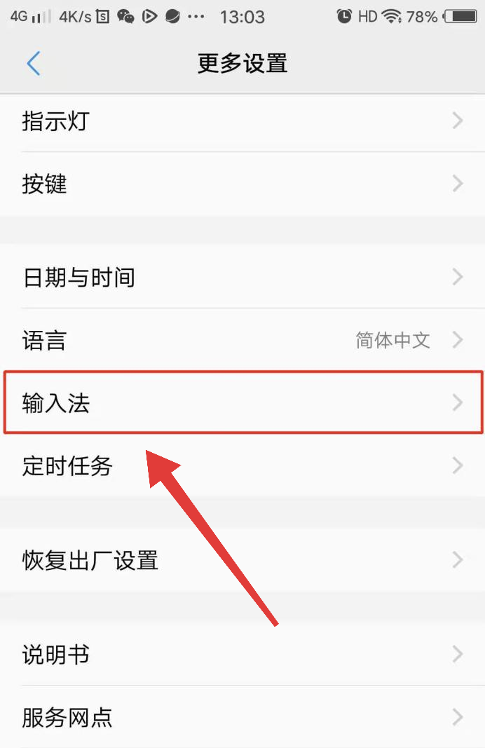 2.进入到更多设置页面后,点击:输入法。