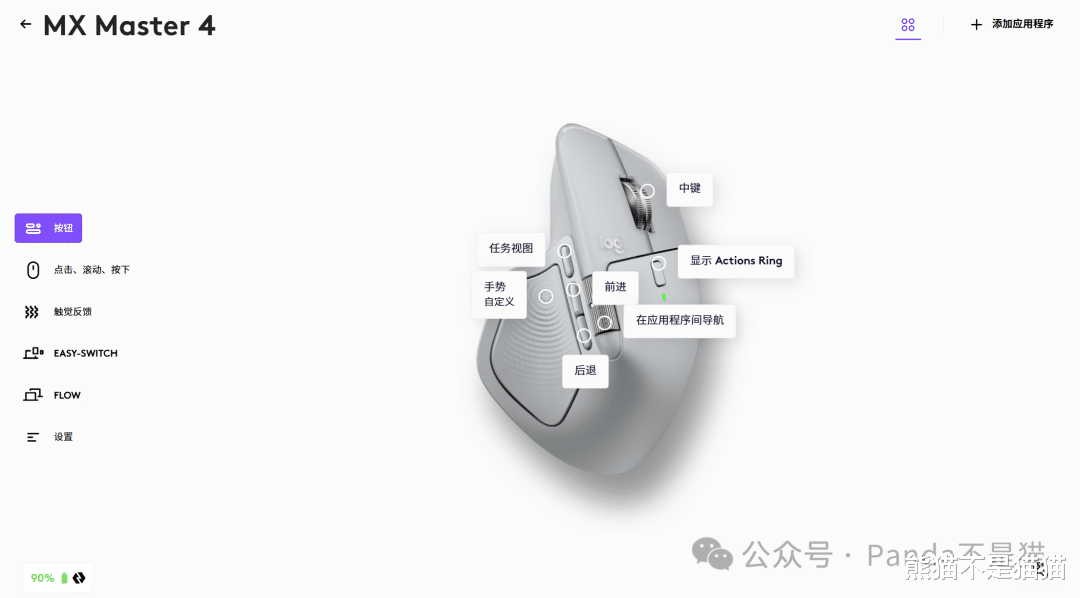 罗技Master 4的核心卖点在于左侧的拇指键、快捷键以及侧边滚轮。