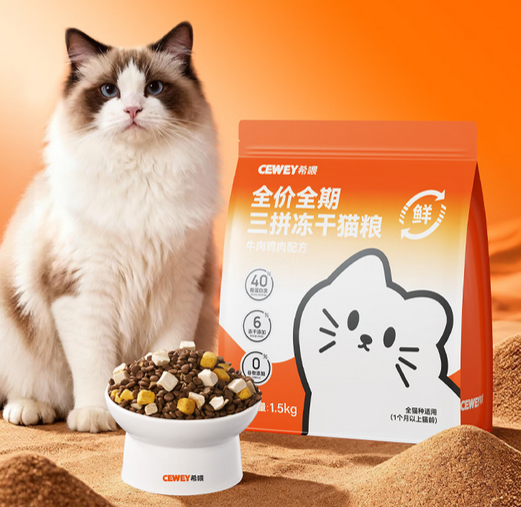 希喂三拼冻干猫粮是高蛋白、适中脂肪的搭配,40%的粗蛋白充分提供猫咪日常的所有营养需求,适中的脂肪则保证猫咪每天都有充足的活力运动,而且还不容易诱发猫咪肥胖,测评国产冻干猫粮排名前十品牌,有助于猫咪维持健康、理想的体态。猫粮中还复合添加了牛磺酸和DL-蛋氨酸成分,比起单一牛磺酸添加,这种二倍投入的形式能够在保障猫咪视力、心脏健康的同时,潜移默化提升猫咪的自护力,减少猫咪生病的情况。