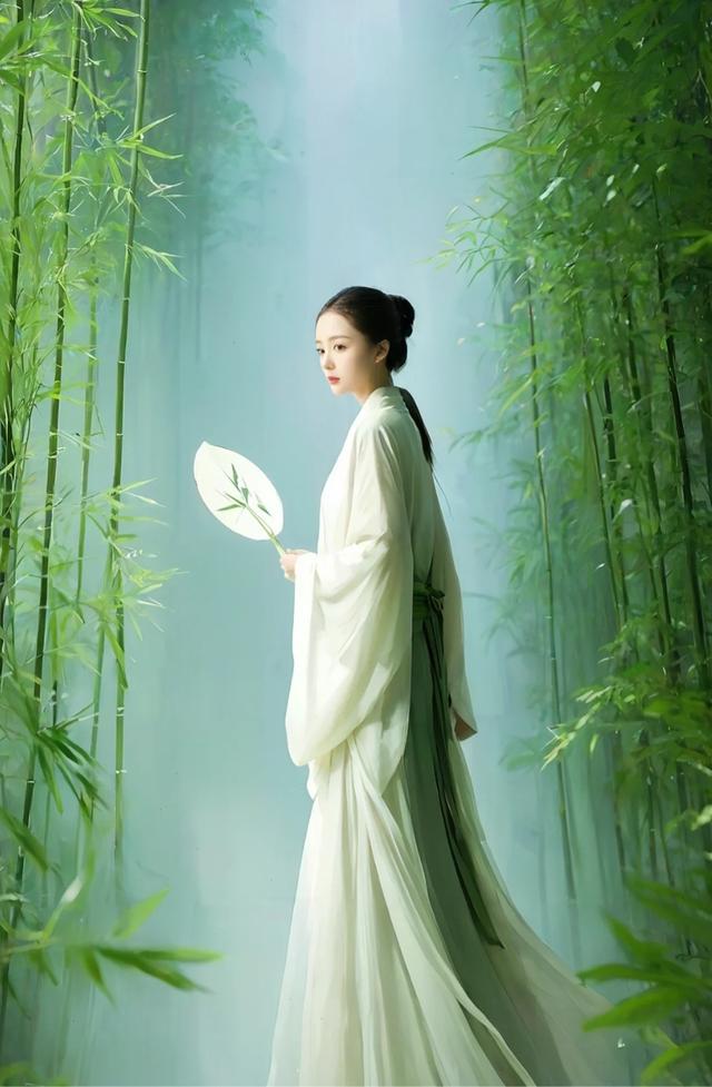 “高簳楚江濆,婵娟含曙氛”,楚江畔的高竹挺拔而立,秀美的身影沐浴在晨雾中。