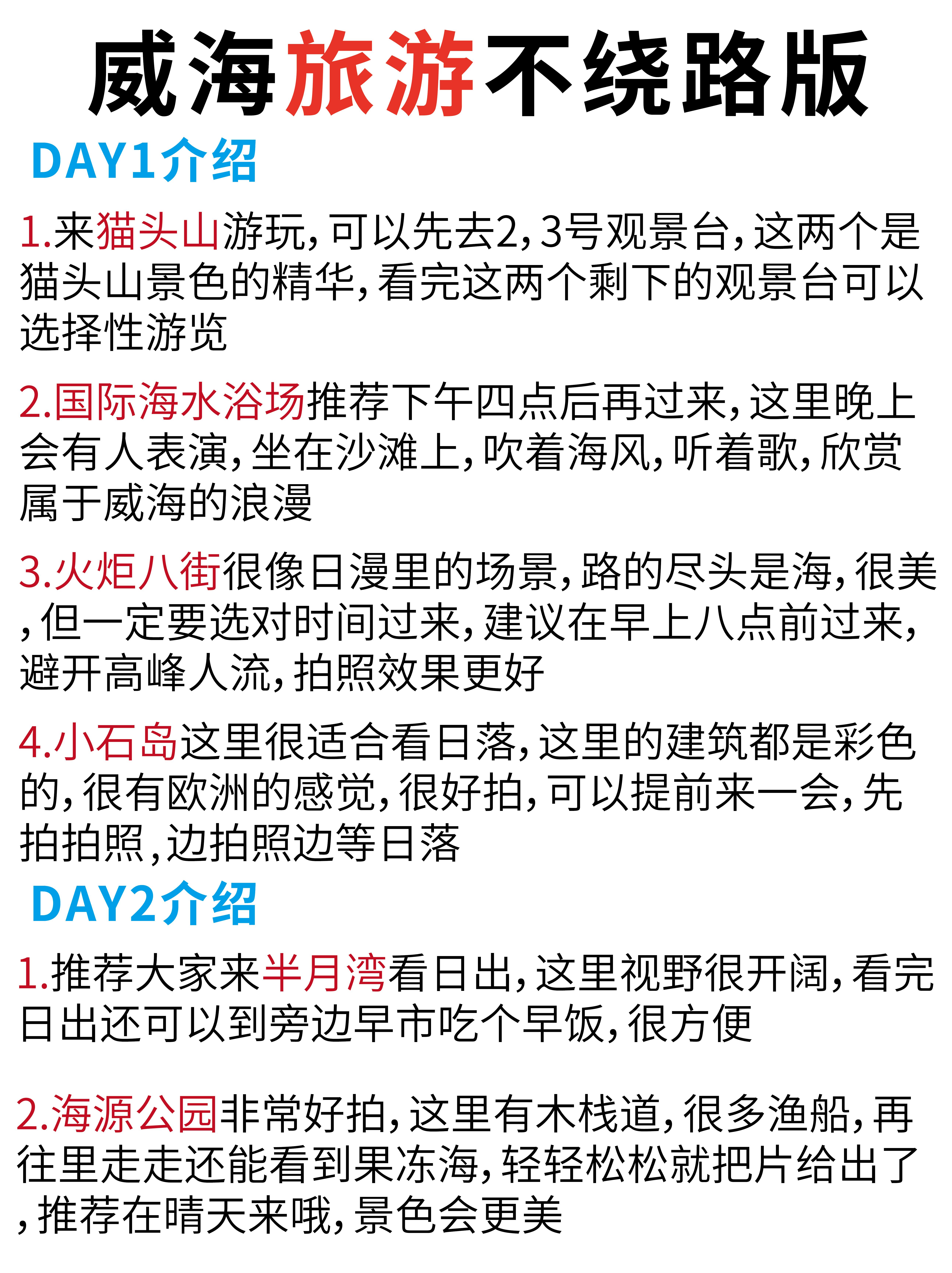在威海呆了几天,威海真的太美🤩了,现在🚶♂️人也不算很多,非常治愈❤️,随便找个咖啡厅☕️,看看海🏖️,就能坐一下午,回来赶紧把我的心得给整理了出来,让大家来抄作业📋