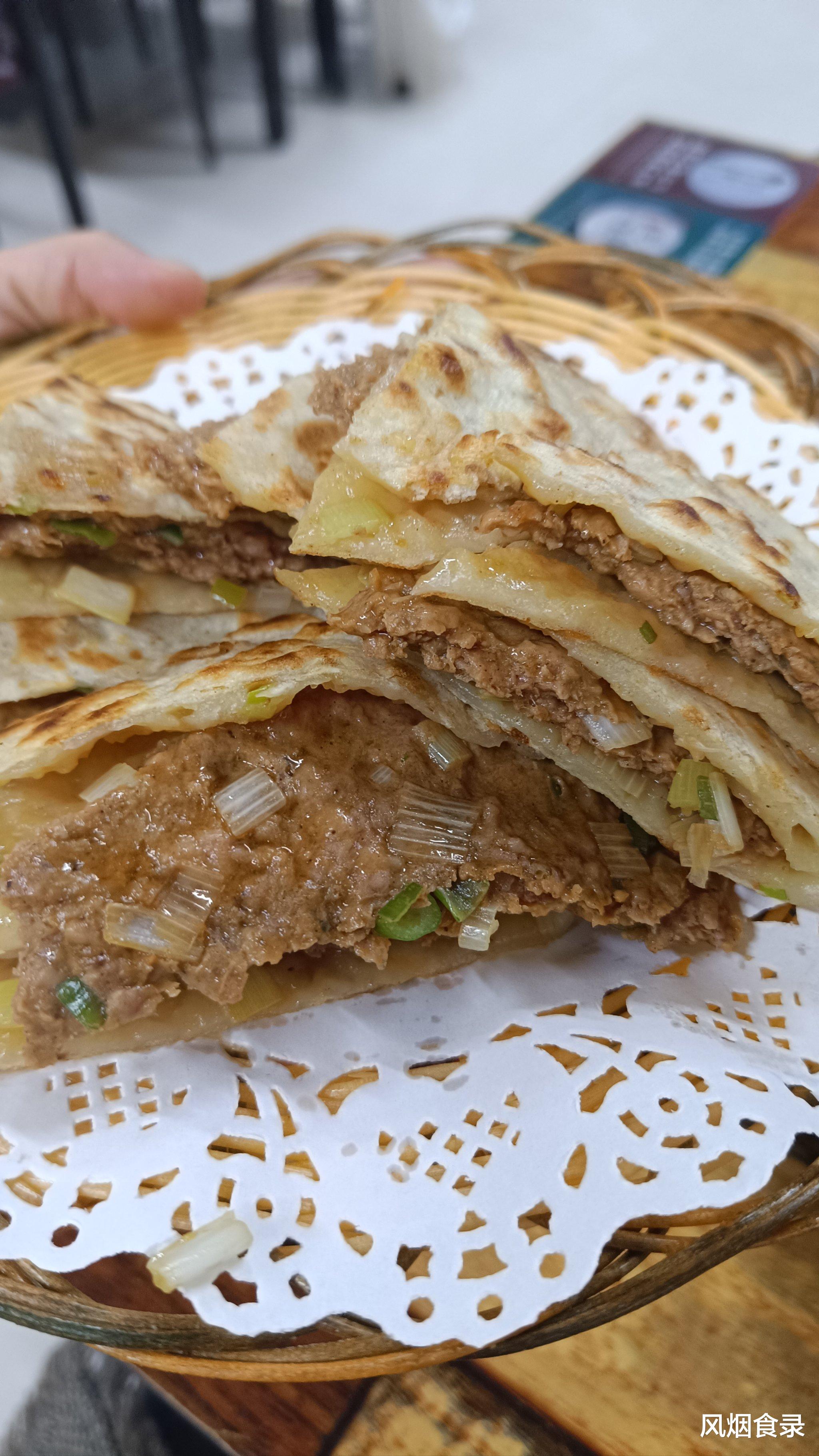 这饼子皮薄如纸,能透出肉馅的油香,咬一口外酥里嫩,油而不腻,肉鲜细嫩直窜喉咙。