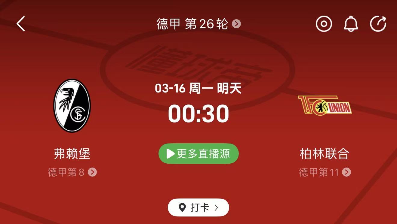 🔹 周日022 德甲:弗赖堡 vs 柏林联合(00:30)