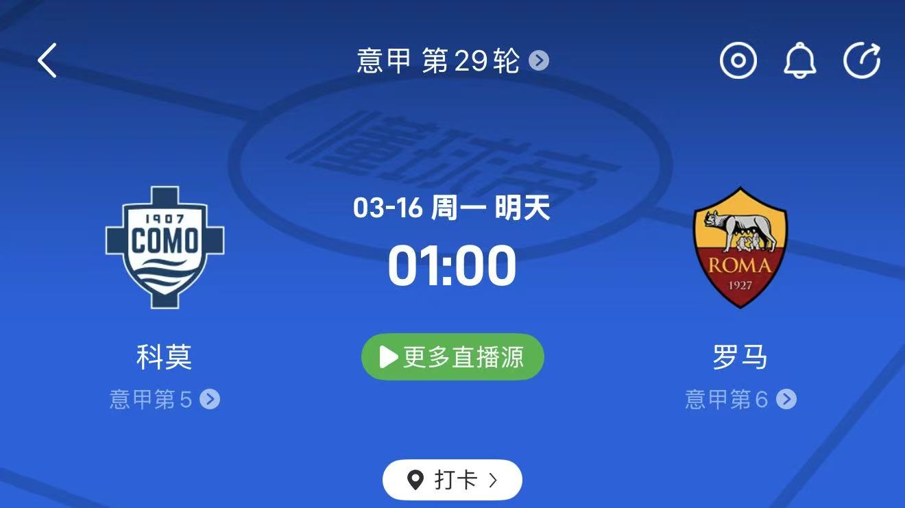 🔹 周日023 意甲:科莫1907 vs 罗马(01:00)