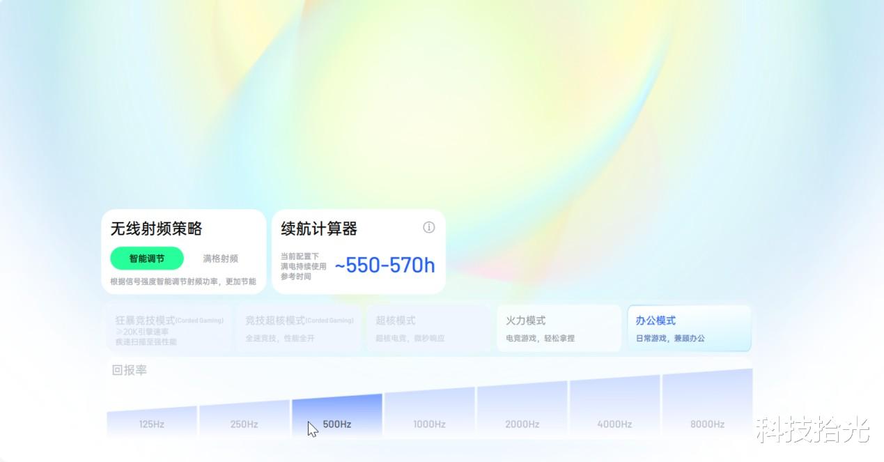 而选择低于1KHz以下时,界面会切换成办公模式。界面也会切换成非常淡雅的白蓝色调。续航甚至突破了550H以上。