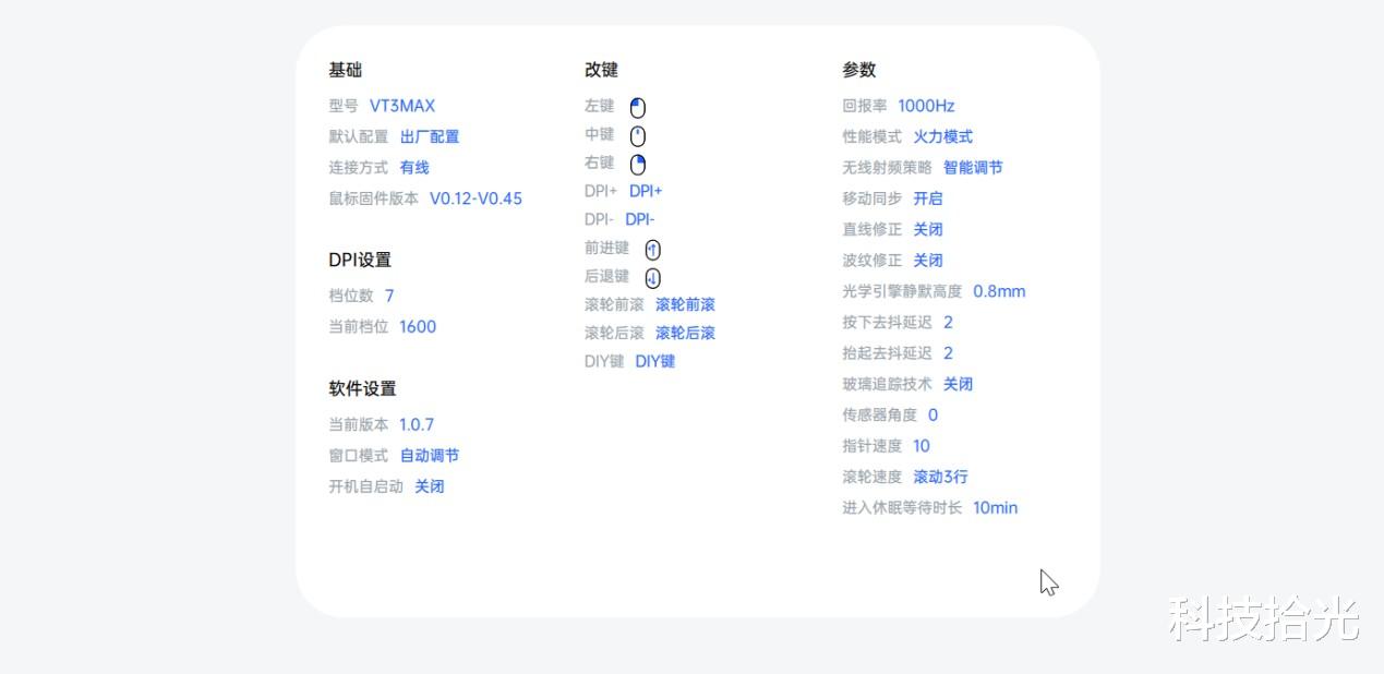 点击鼠标图标,即可进入单独设置页面(下面以VT3 MAX为例展示)。