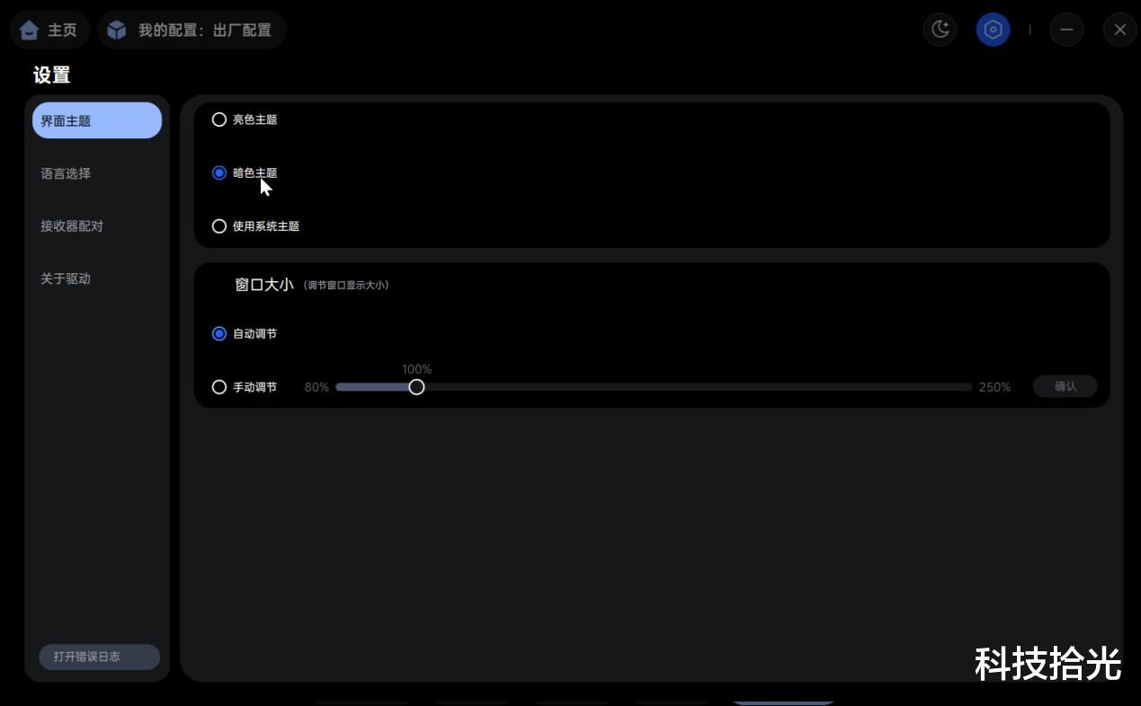 在设置界面,可以选择亮色主题或暗色主题或跟随系统。相信雷柏的老用户肯定记得上一代的驱动界面,是黑色+蓝色的搭配,电竞风格满满但是这次的界面换新,我觉得这个亮色主题搭配多功能模式选择,确实比之前的驱动界面更加好看。希望后续雷柏可以将更多的驱动集合成1个云端驱动,并由网页实现,这样就可以大大简化找驱动和下载的步骤了,我们拭目以待!
