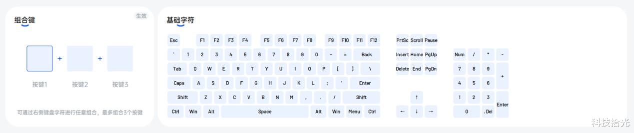 改键部分还有组合按键和宏定义按键功能,在这一个界面都可以轻松完成设置。
