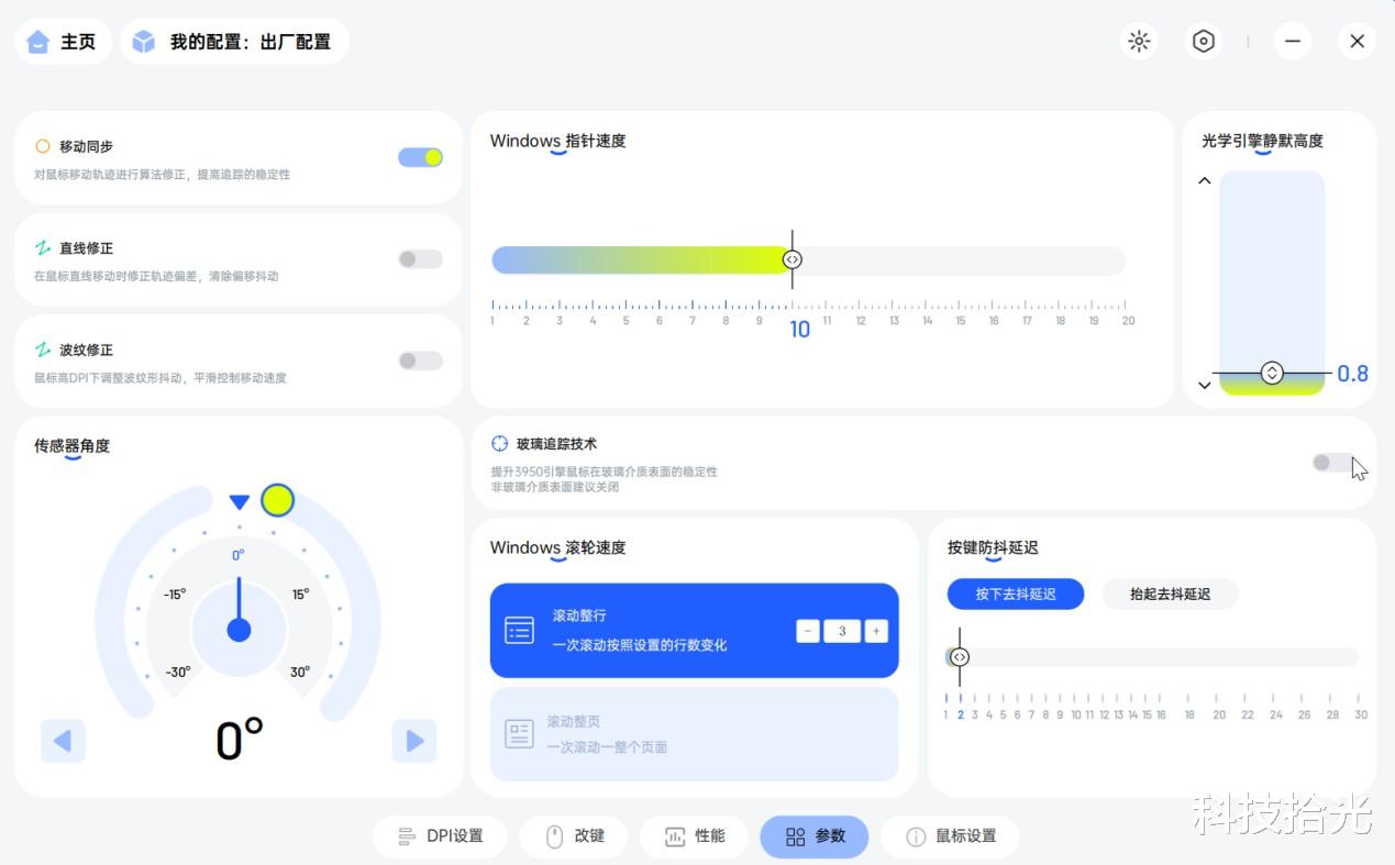 针对不同的手型去使用鼠标,如果感觉鼠标使用起来没有与你的移动保持一致,可以通过调节传感器角度,进行调优。这种设置简直是武装到了牙齿的级别。