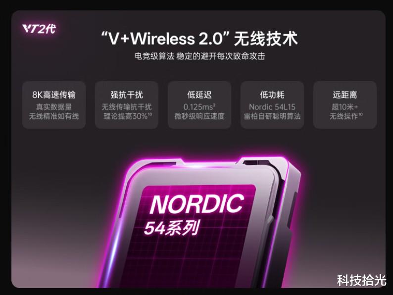 另外一点要说的就是雷柏新推出的V+Wireless 2.0无线技术。新升级的Nordic 54系列芯片加持,相比52系列芯片提高了2倍主频和2倍无线传输带宽,相比于市面上超频8K,雷柏VT3二代双8K系列是原生8K。在辅以独立研发能力调教,可以实现8K高速传输,抗干扰性更好,延迟低至0.125mm,超10米传输和更高的续航表现,同时兼容Windows和macOS配置无缝使用,简直可谓是市面上“独一家”!