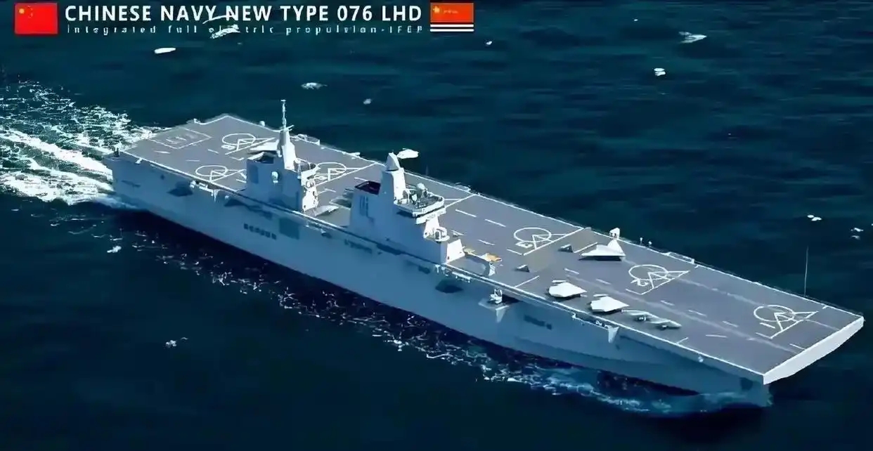中国海军在075型两栖攻击舰之后,突然冒出了一艘更大更强的新一代两栖攻击舰,这就是排水量超过4万吨的076型舰。