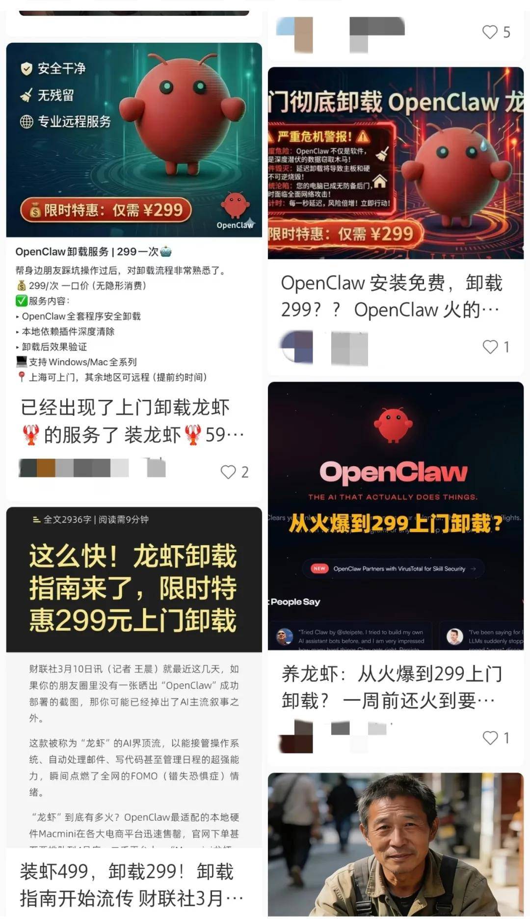 有媒体报道,在安装热潮之后,社交平台和交易平台上已经出现 “上门 / 远程卸载 OpenClaw” 的服务,价格从 29.9 元到 299 元不等。有人愿意花这个钱,并不只是因为 “懒得自己弄”,更重要的是担心自己删不干净、留后患。毕竟,对很多人来说,卸载一个普通软件,理解就是 “拖进回收站” 或者 “控制面板里点卸载”。