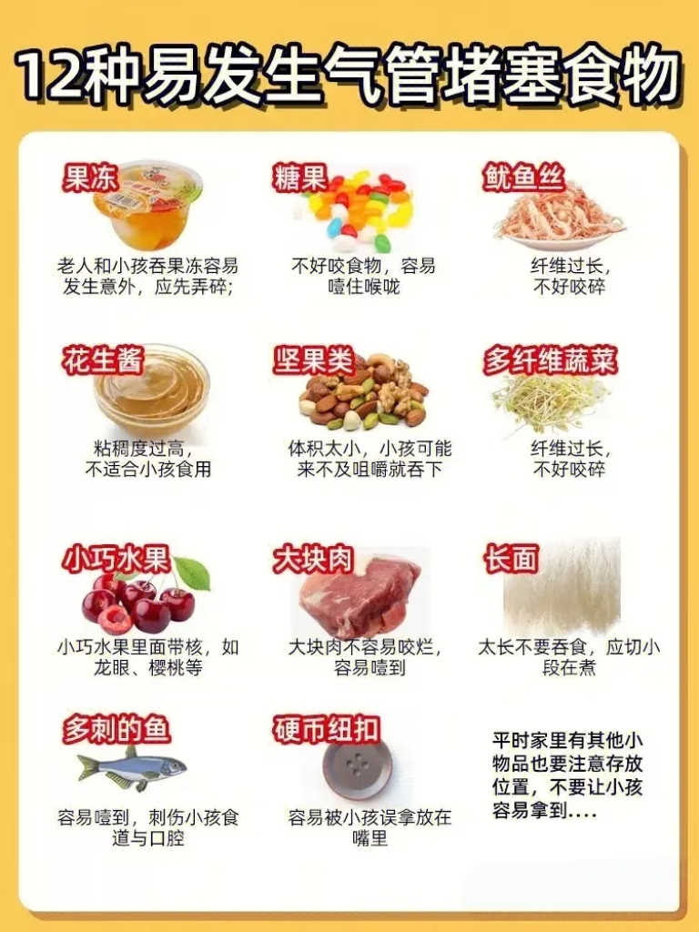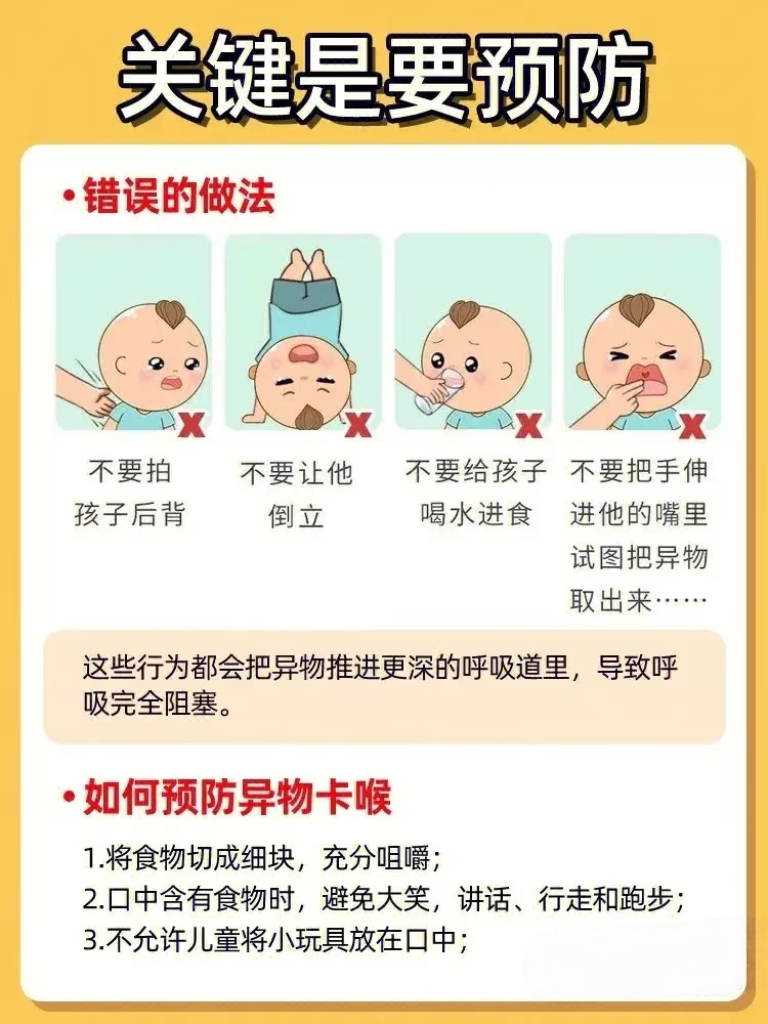 · 胡乱拍背: 可能会导致异物越陷越深,从气管滑落到更深处,完全堵死气道。