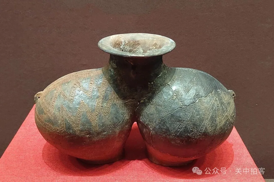 这里陈列的卡若遗址出土双体陶罐,被誉为西藏博物馆的“镇馆之宝”。它是新石器时代卡若先民在庆典和祭祀活动中使用的礼器,犹如两只小兽相向而立,颈部和肩部有一对穿孔,好像小兽的耳朵和尾巴。