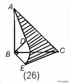 例26.如图,等腰直角三角形ABC和四分之一圆DEB,AB=5厘米,BE=2厘米,求图中阴影部分的面积。