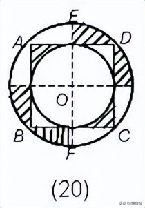 分析:连接角上四个小圆的圆心构成一个正方形,各个小圆被切去