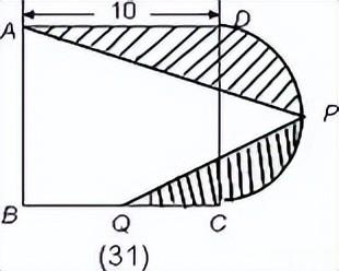 例31.如图是一个正方形和半圆所组成的图形,其中P为半圆周的中点,Q为正方形一边上的中点,求阴影部分的面积。