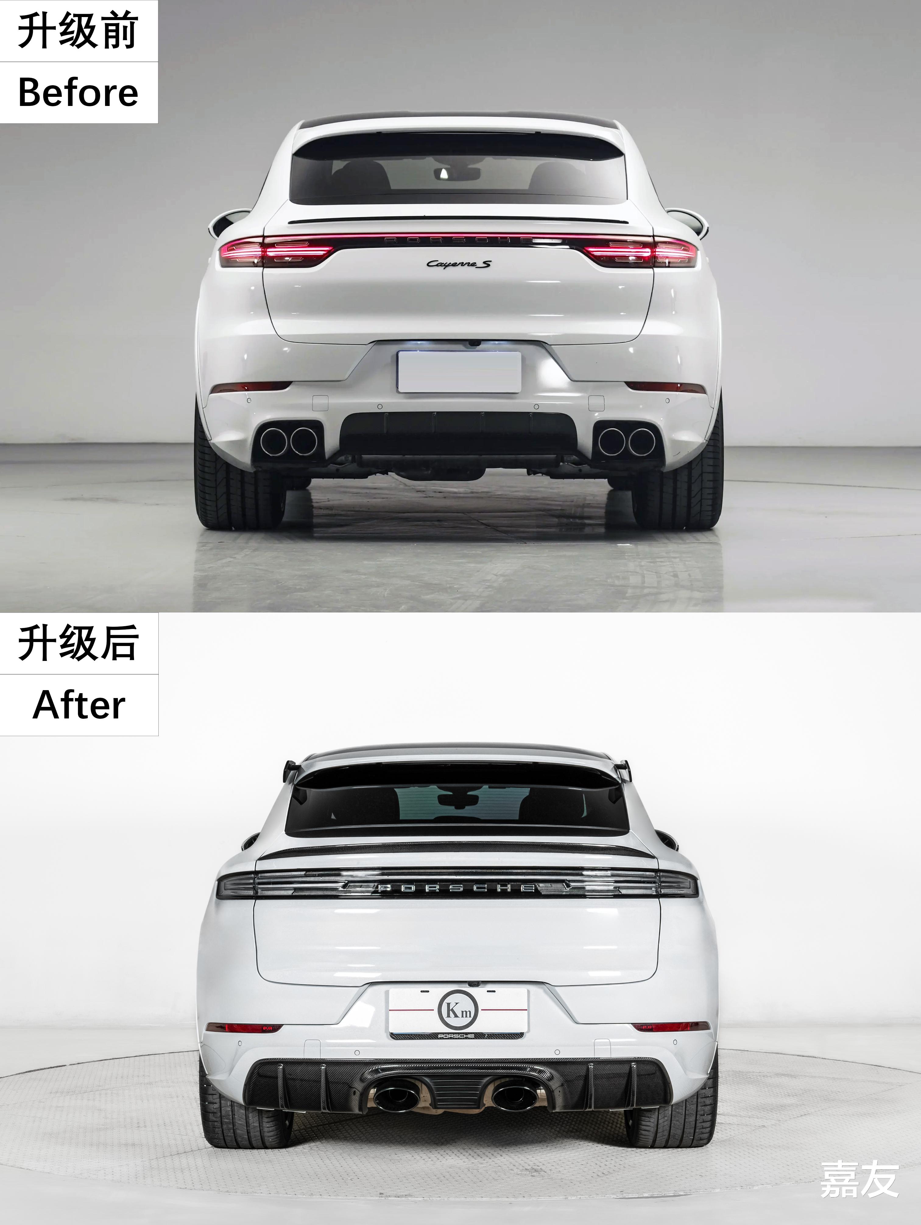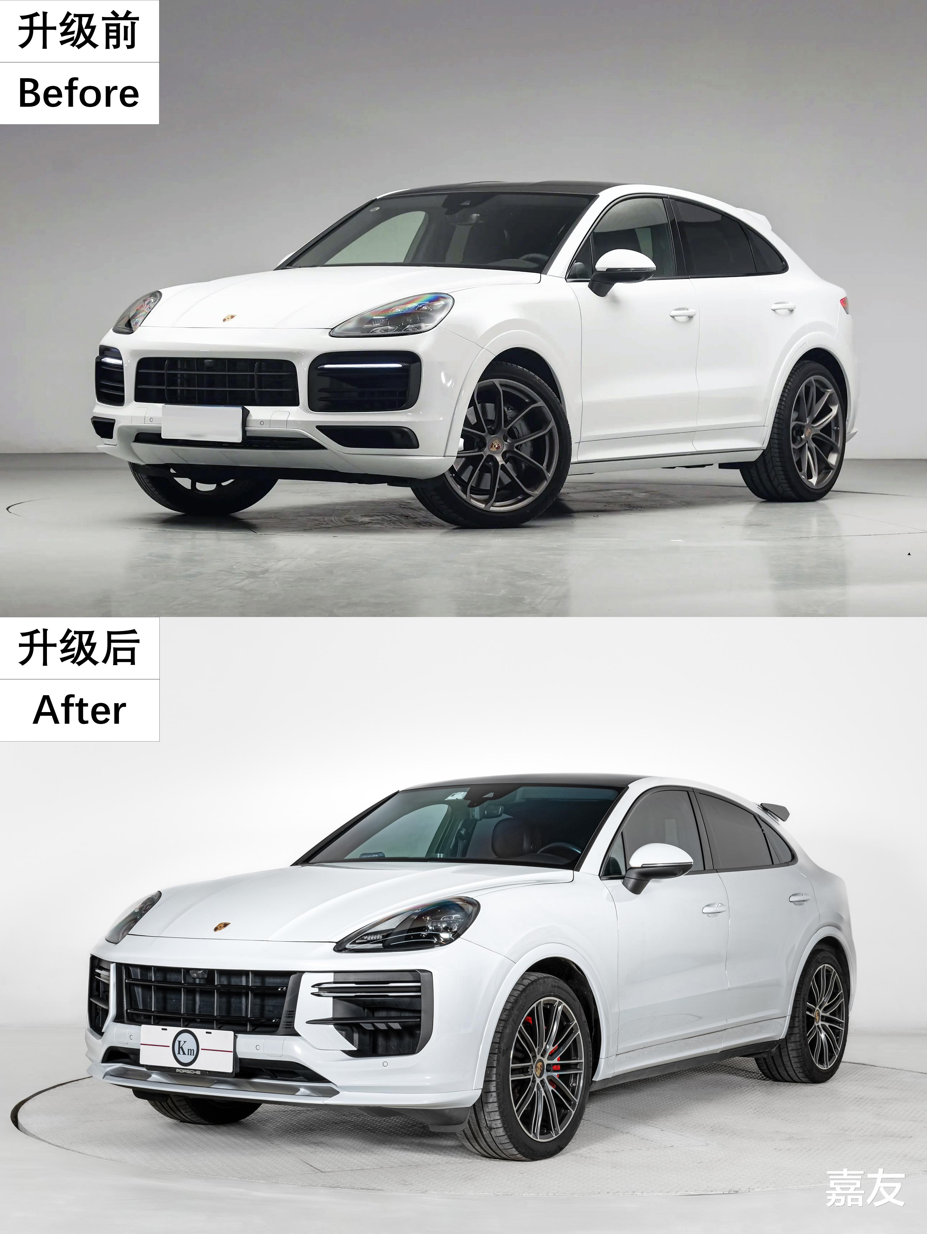 今天,我们就来详细解析一下如何将保时捷卡宴9Y0.1 Coupe(2018-2023)款升级至9Y0.2 Coupe Turbo GT(2024)款式的外观,涵盖前后包围、侧裙、尾门、尾灯、干碳饰板及中出尾喉的全套改造方案。