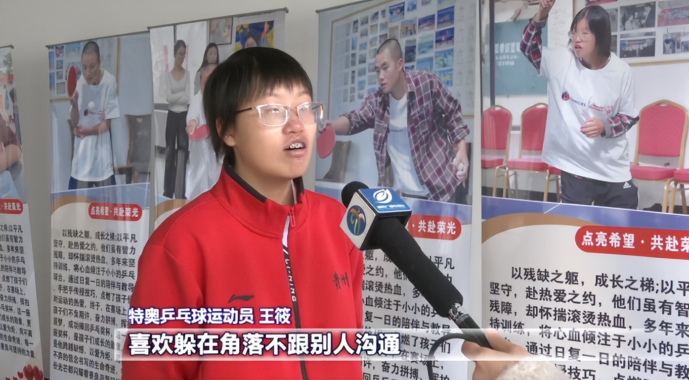 特奥乒乓球运动员 王筱:我2016年来的时候,喜欢躲在角落不跟别人沟通,以前连交流都没有,现在变化很大,变得很阳光很开朗,可以跟别人交流了。