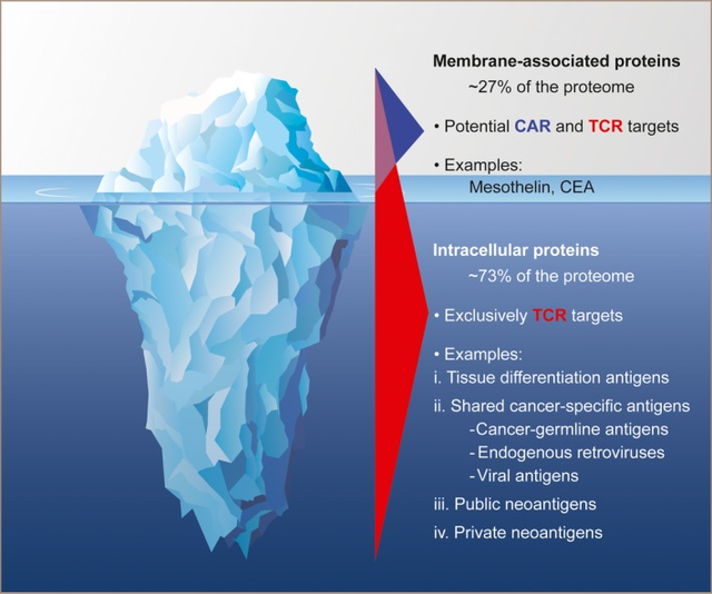 多数情况下,癌细胞能逃避免疫疗法的追踪,因为它们的识别标志物隐藏在细胞内部而非表面。这就导致CAR-T细胞疗法可能无法有效识别癌细胞。而T细胞受体工程化T细胞(TCR-T)疗法则能够识别癌细胞内部标志物的免疫细胞来实现精准打击。