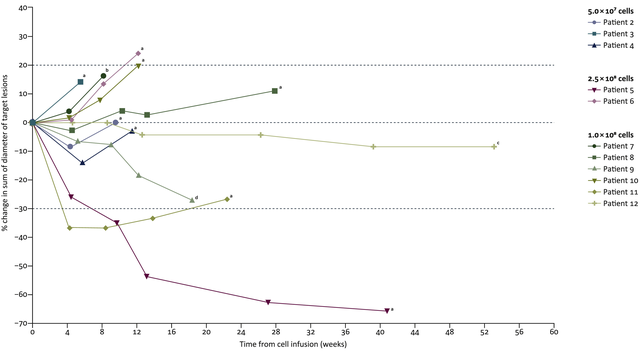 患者5在细胞输注9.5周后达到部分缓解(PR),反应持续时间为7.1个月。