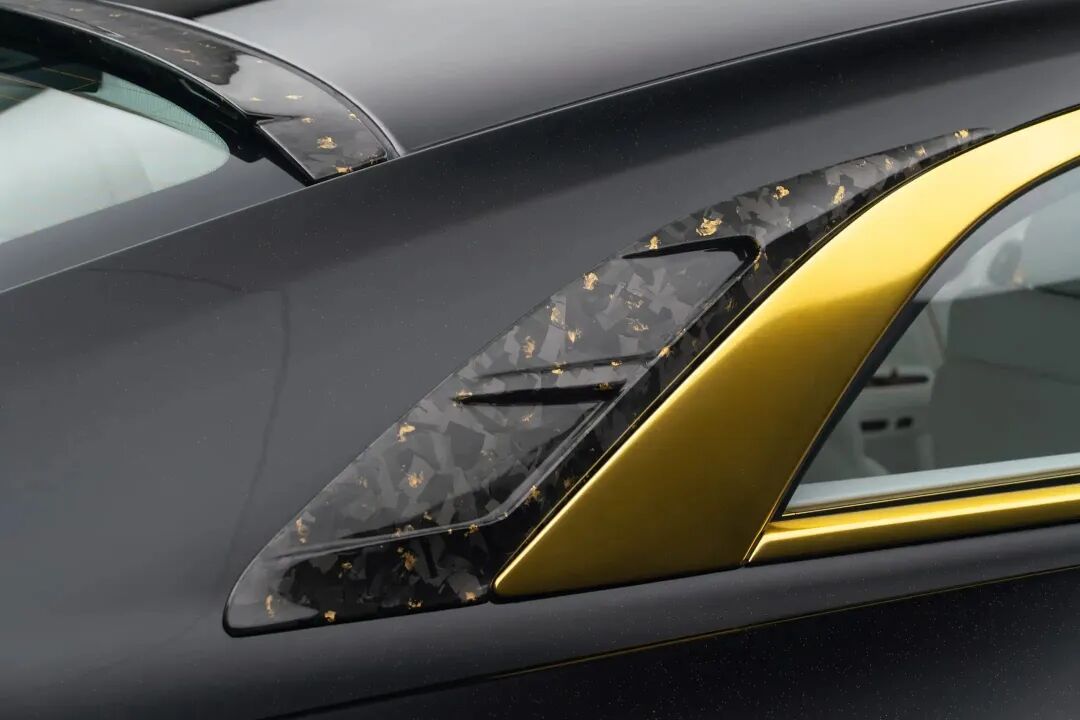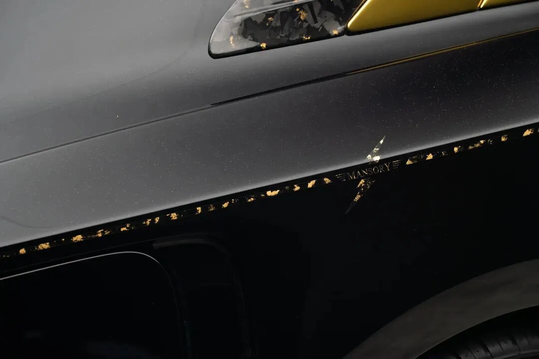 该车增加了宽体碳纤维套件、24英寸轮毂、金色细节,而最引人注目的是,在后保险杠下方隐藏了外置扬声器,可向车外播放模拟的内燃机引擎声浪。