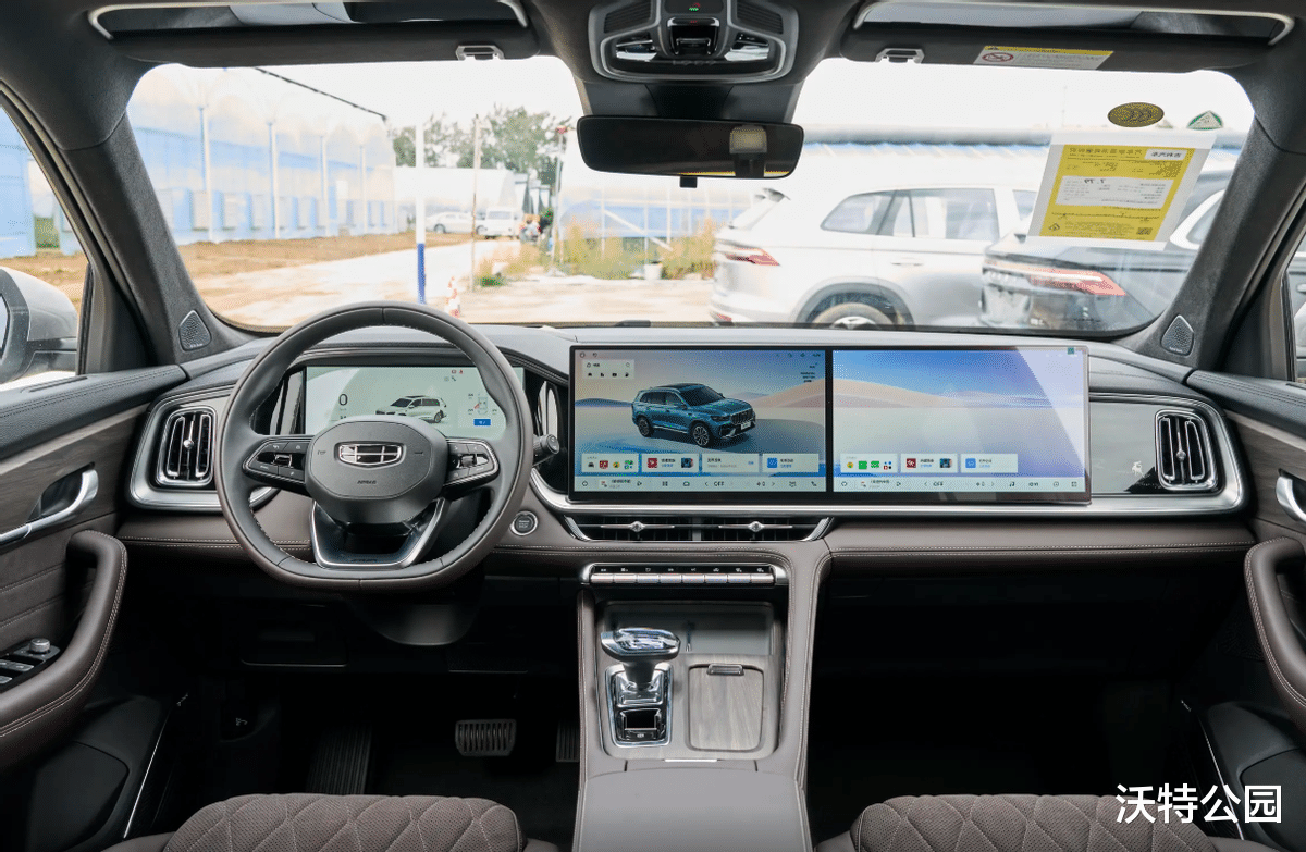 星越L的内饰核心特征是双14.6英寸联屏,副驾屏幕的存在,让副驾乘客在长途乘坐时有了独立的影音交互区域,这确实是一个区分于传统燃油车的差异点。在用料层面,星越L在身体常接触的区域,比如车门板、座椅、中控台两侧,大面积使用了类似翻毛皮的麂皮材质进行包裹。这种材料的触感和视觉质感相对柔软,配合双拼配色,整体内饰的氛围感会更突出,也更迎合一部分用户对“豪华感”的理解。
