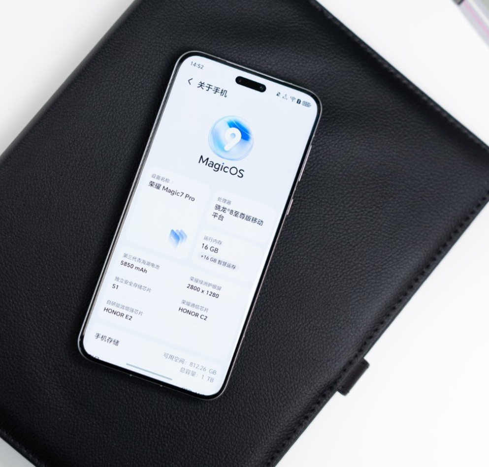 当然了,荣耀Magic7 Pro的其他外围配置也还行,屏幕6.8英寸的全等深微四曲屏,尺寸比新款还要大,做到了1~120Hz LTPO自适应刷新率,又实现了4320Hz的超高频PWM调光,局部峰值亮度做到了5000尼特。在太阳光下依旧能够正常的刷抖音,在信号方面,给到了自研的独显芯片C2作为辅助,在各种弱网区域不用过于担心信号丢失的问题,联网又快又稳,续航表现和新款确实有差距,5850mAh电池,100W快充,80W无线充电的组合。